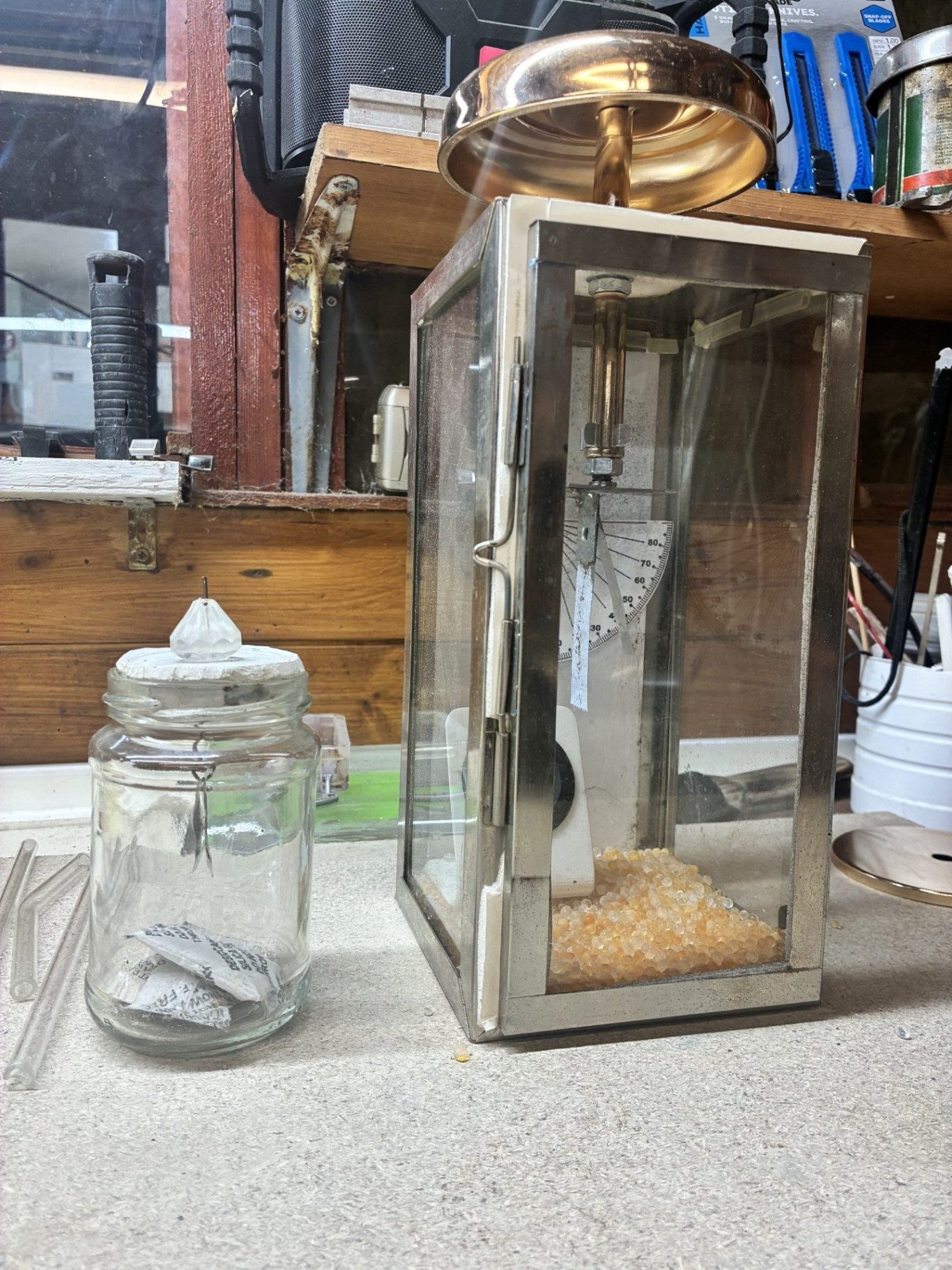 The jar on the left is a school science class electroscope, loved by science teachers everywhere due to its simplicity and ease of construction which allows the kids to make it themselves and then experiment with it. Ideal case of Learning-By-Doing