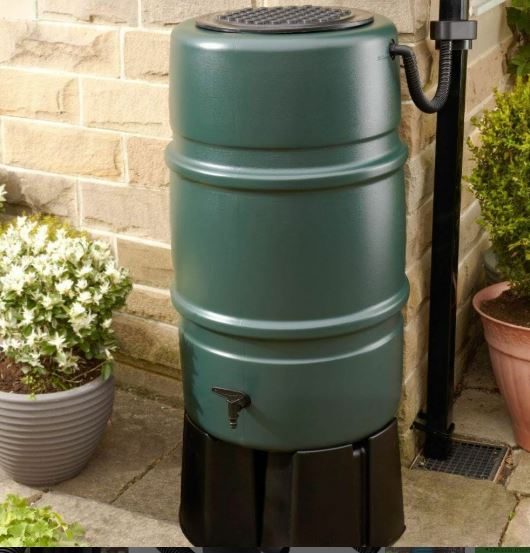 The gardener's friend - a water butt with diverter from the roof guttering. Sizes vary.