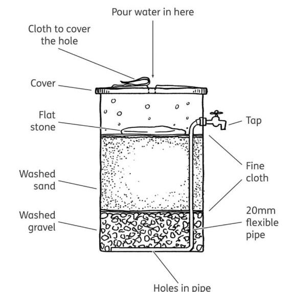 The water should then be filtered , even towelling and a sand bed filter will do.