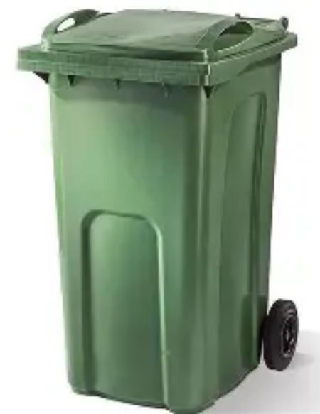 Council Issue wheelie bin, 120 l to 240l. Food grade liners bin liners are available for all sizes - hmmm.