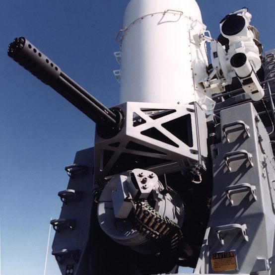 Opposite, a Gatling type close-in Anti Missile System.
